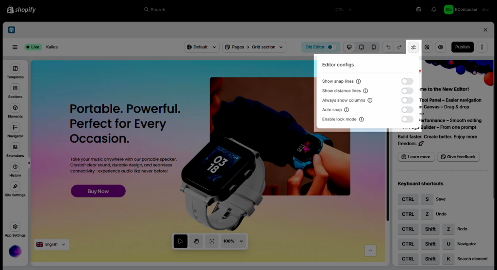 Say hello to Freedom Mode in the new EComposer editor 3.0! Now you can design with total flexibility, easily dragging and dropping elements wherever you want on the canvas to achieve the perfect layout.
