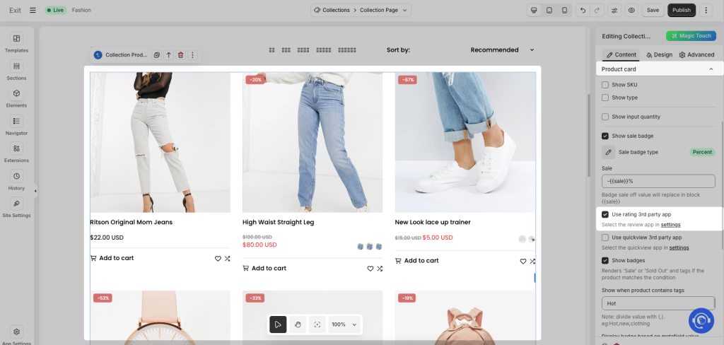 Once enabled, Yotpo star ratings will automatically appear on your product cards on the live page.