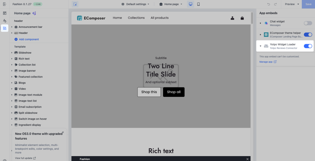 2.1. Use Yotpo Widgets via EComposer Extension
