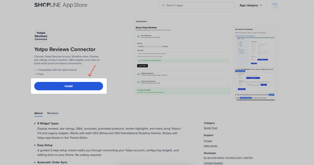 To use this extension, please install the Yotpo Reviews Connector app from your SHOPLINE store first.