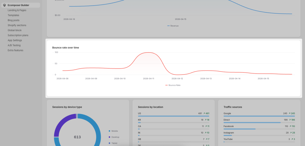 Analyzing website performance is crucial to understanding user behavior and improving website conversions. EComposer’s built-in Analytics help you track the performance of your web pages in real-time by analyzing five key metrics. Let’s explore how it works in this article.
