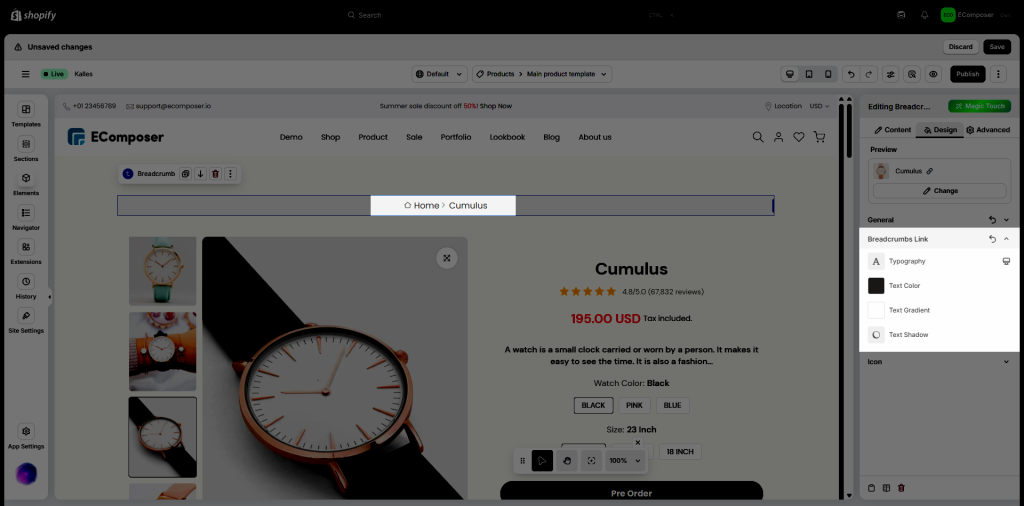 - Text Gradient: Create engaging designs and eye-catching features for the breadcrumb link.