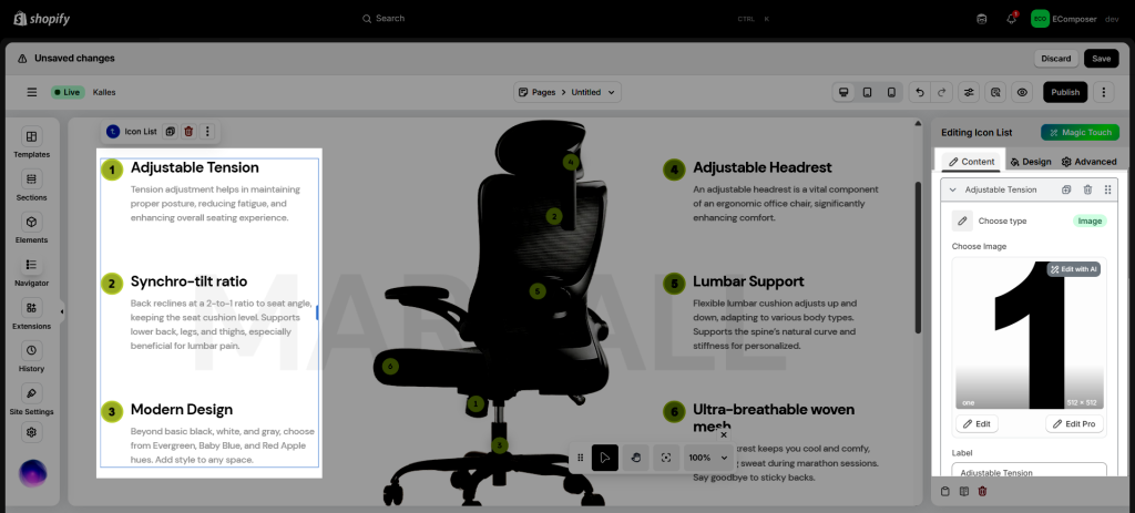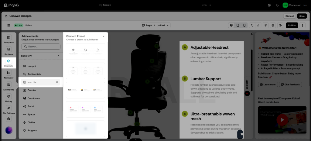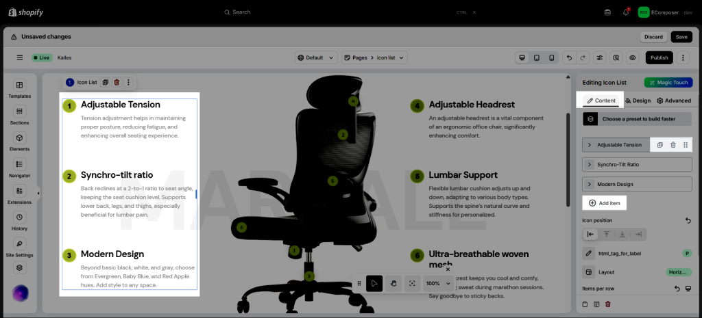 1. How to add an Icon list element to your page