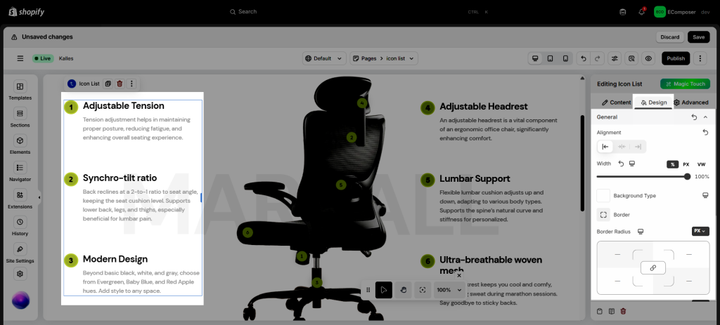 - Border: You can customize the border style for the icon list.