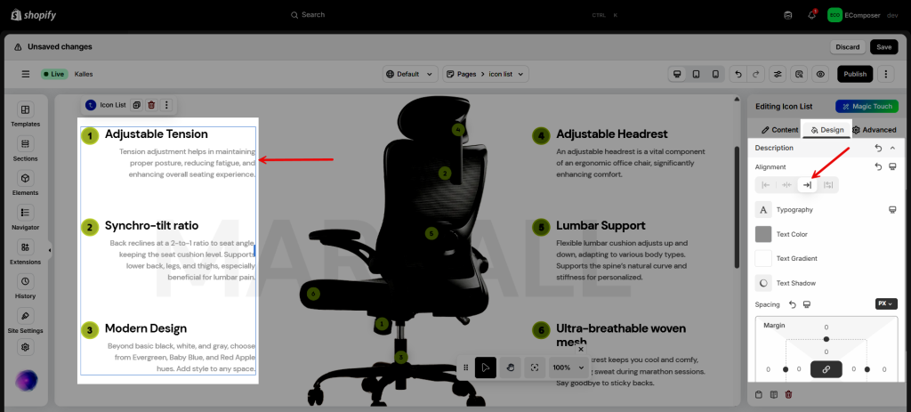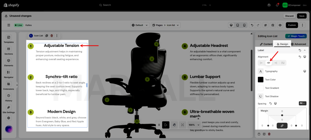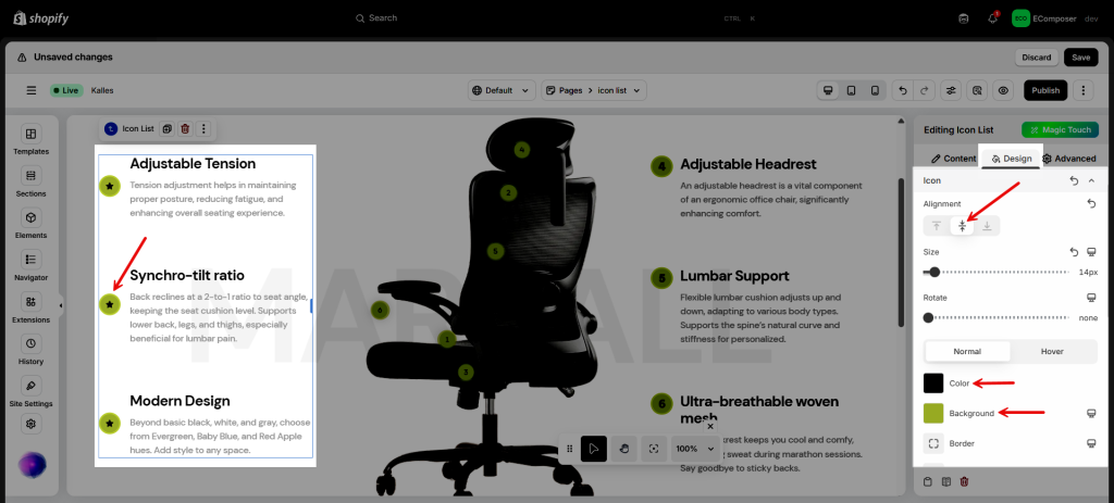 - Alignment: Set the horizontal alignment of the Icon List. It can be left, right aligned or centered.