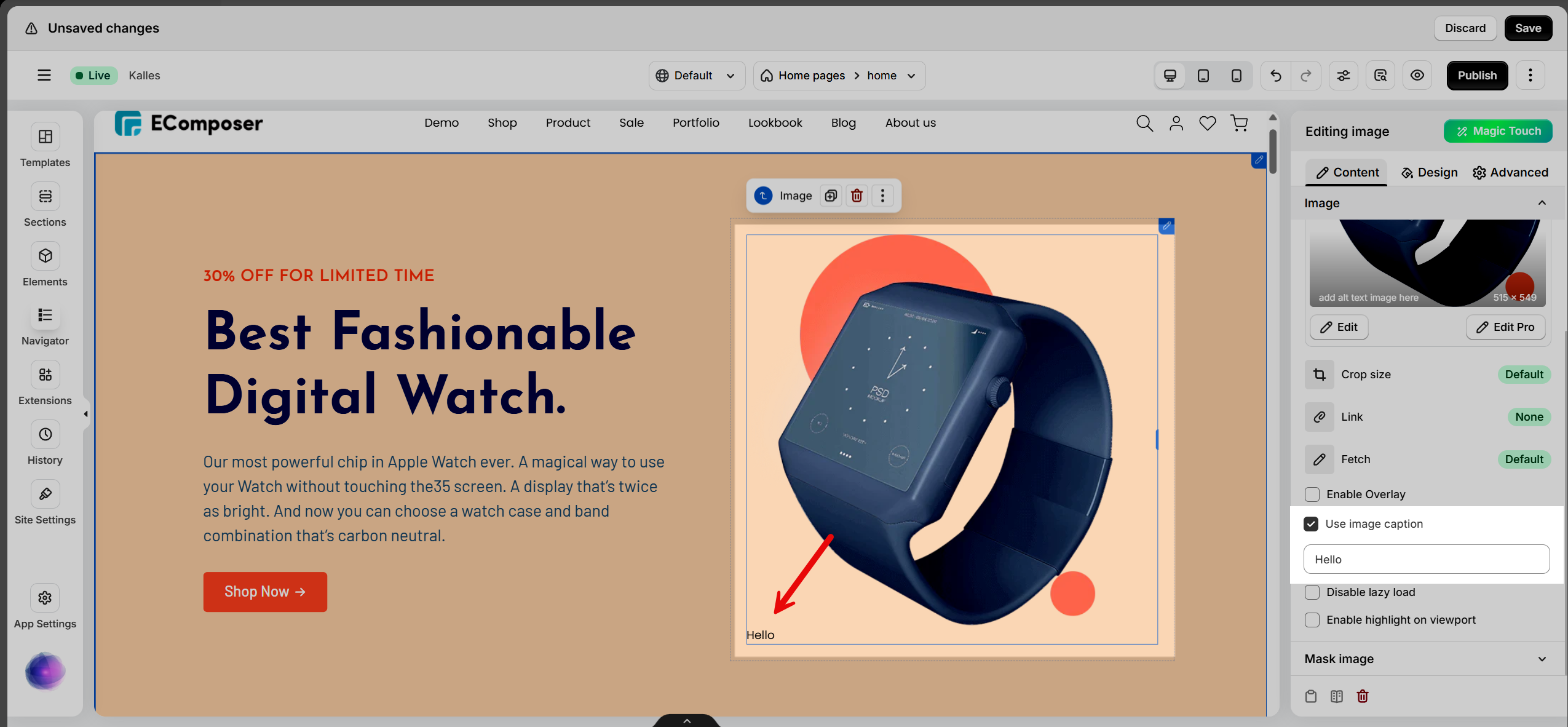 Use image caption: Add a caption that will be displayed below the image.