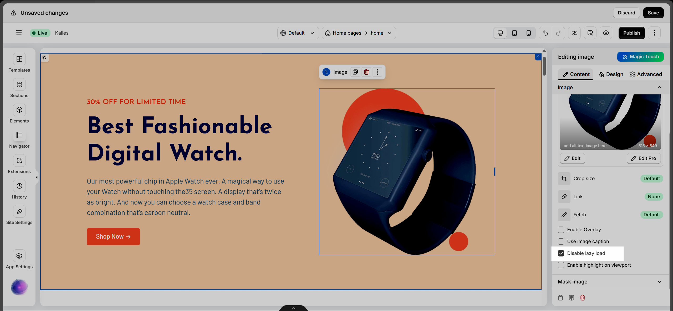 Disable lazy load: Enable this option if you do not want the image to use lazy loading.