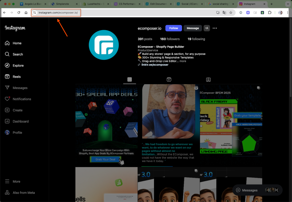For example: this is Instragram link that you get from address bar https://www.instagram.com/ecomposer.io/