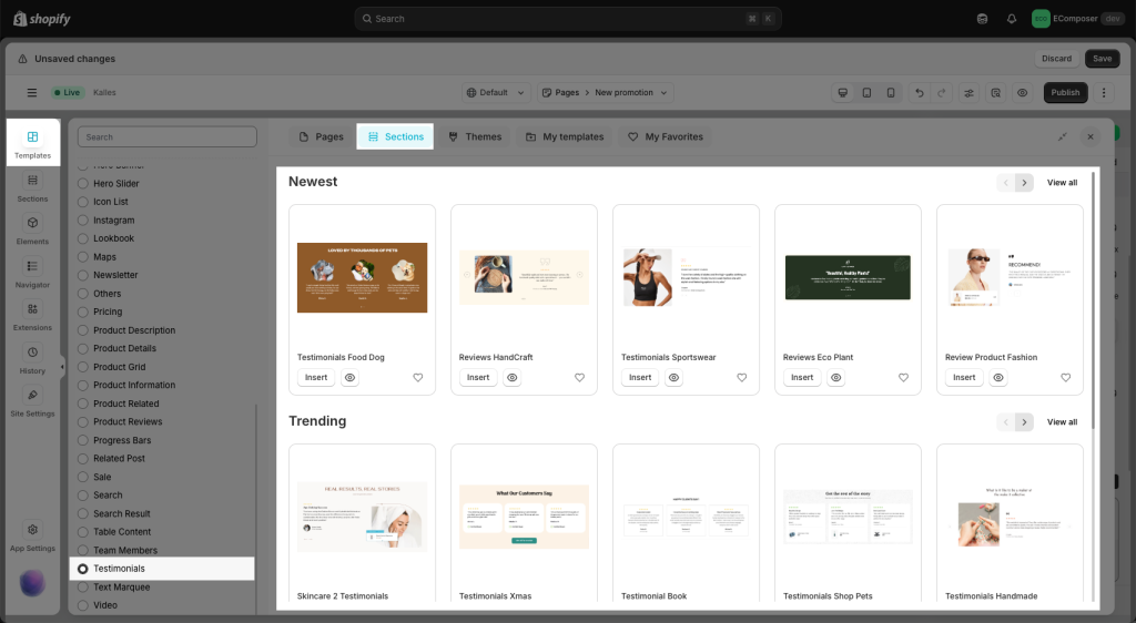 We have built many stunning Testimonial sections in the App Library. You can also choose one you like to use right away. Using a pre-made template for designing page saves you a lot of time