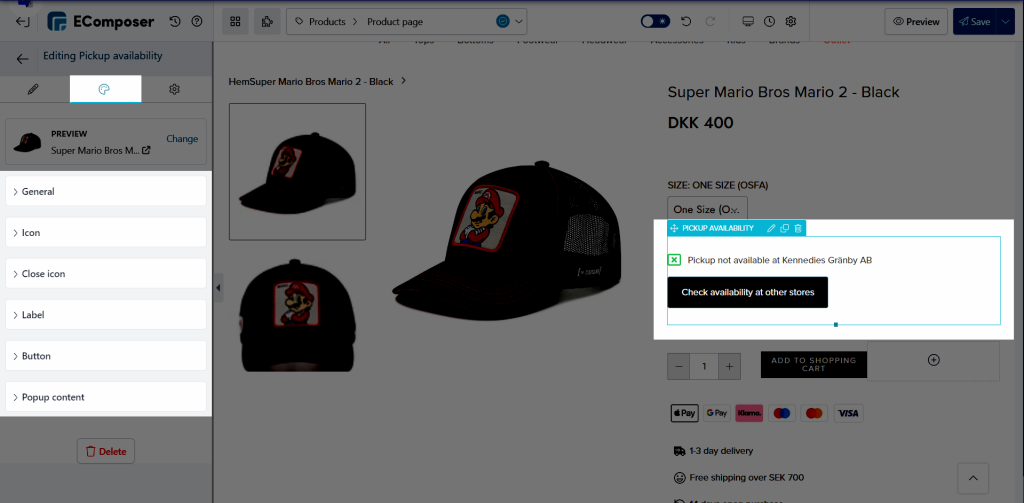 You can set the style for General, Icon, Close Icon, Label, Button, and Popup content