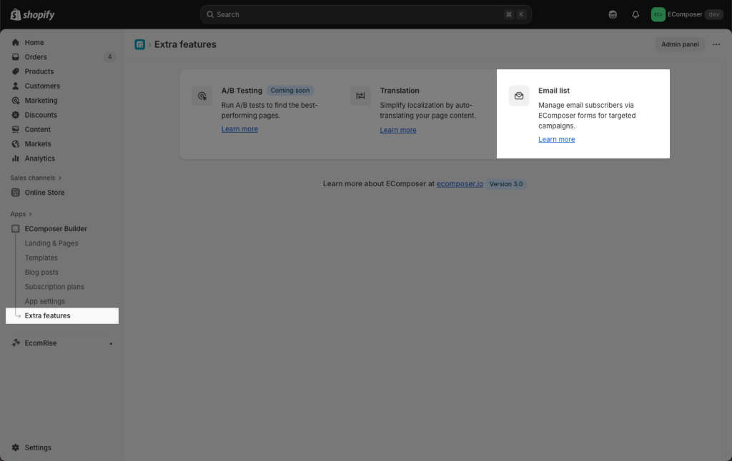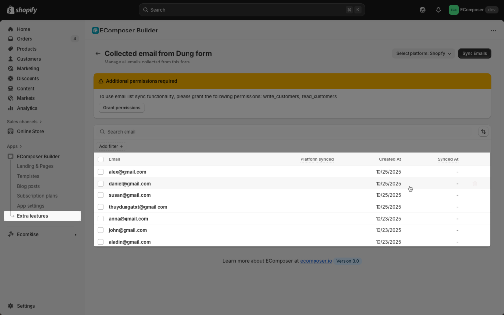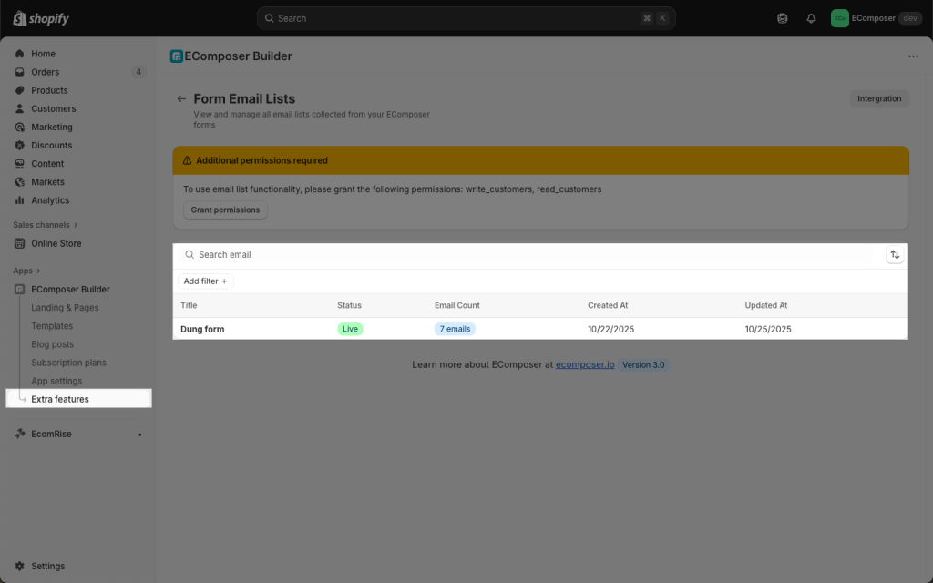 All form submissions are automatically collected and stored in the app backend, allowing you to easily track and analyze form performance. Please open App Dashboard -> Extra featured -> Email list.