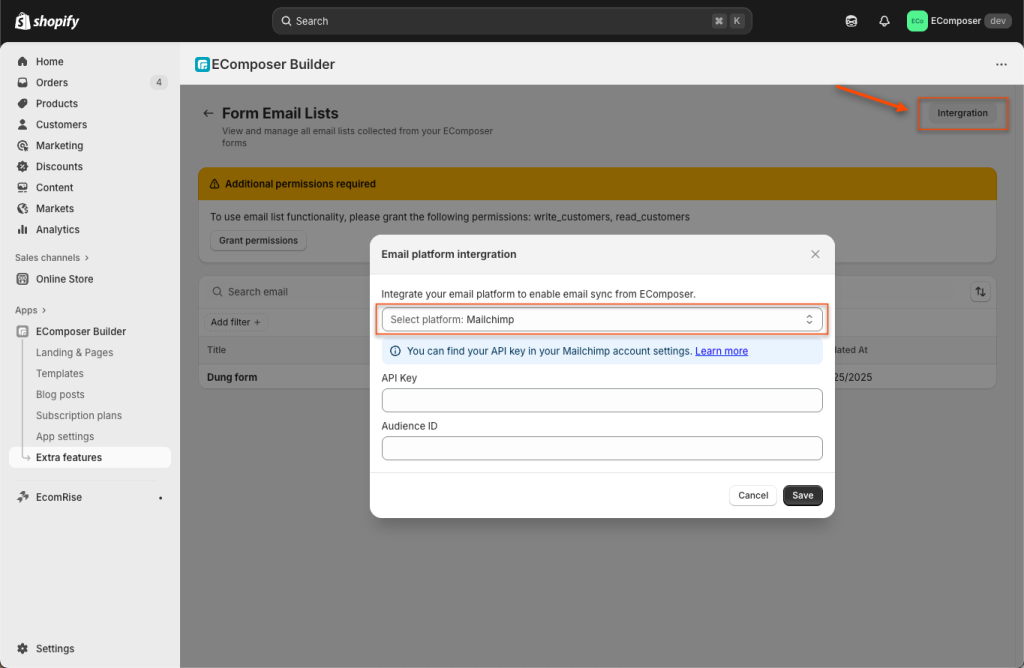 You can also integrate your contact form with third-party email platforms like Mailchimp, Brevo. To connect, simply enter your Mailchimp API key obtained from your Mailchimp account settings.