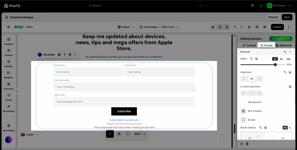 - Border Radius: This allows you to configure the border radius for the Newsletter.
