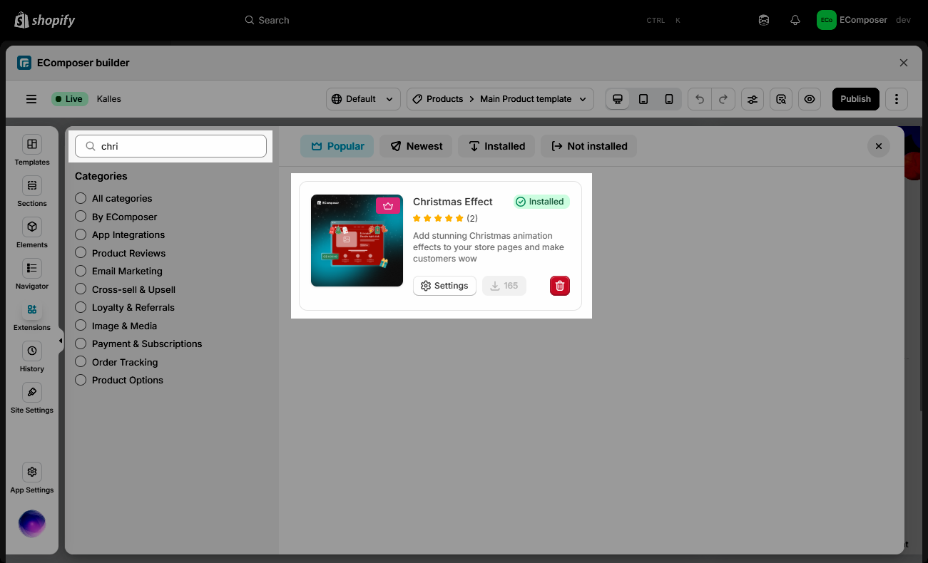 On the Extension popup, you can see the Christmas Effect extension. Click Install now to install it the right way.