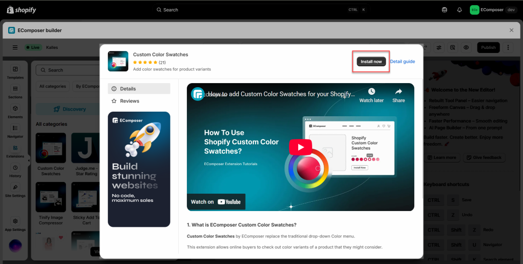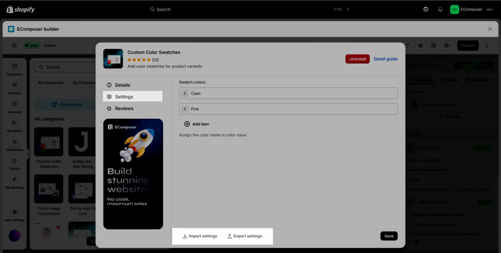 When you come to this extension, it will allow merchants to set the colors for Product Variant colors, and easier for you to get the extension with a click on the “Install now” button. If some situations where you no longer need this extension, you can also go to this button to “Uninstall” it. Please continue reading for more details below.