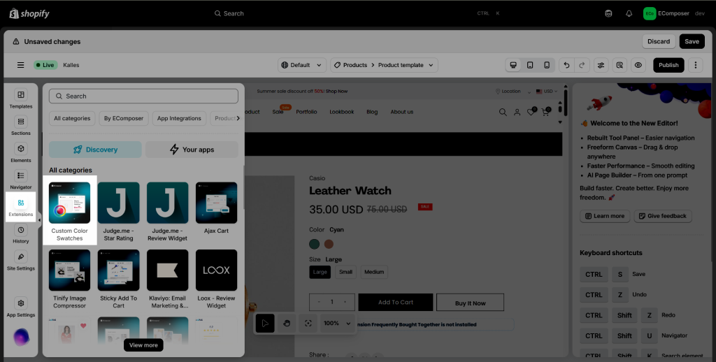 On the Extension popup, you can see the Custom Colors Swatches extension.
