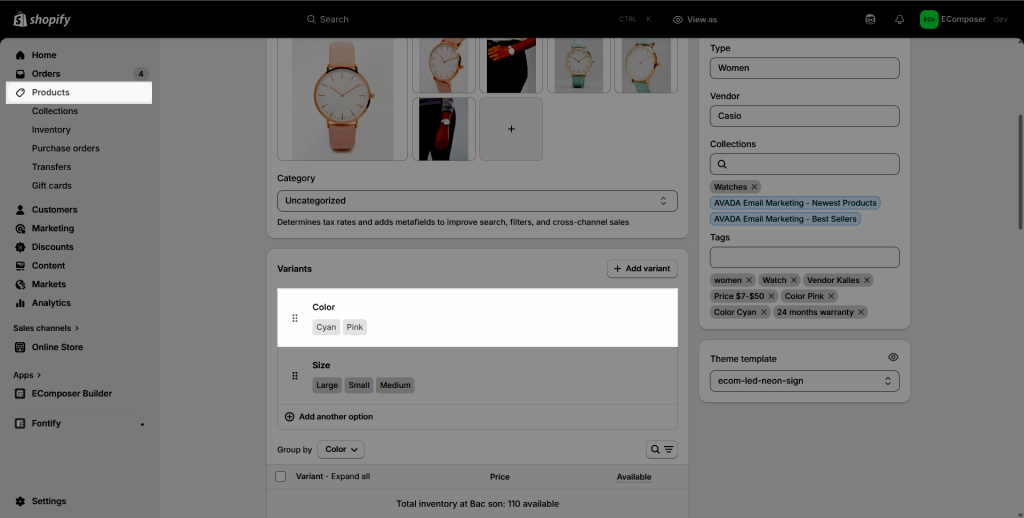 2.1. Create the color variant for your product in the Shopify admin