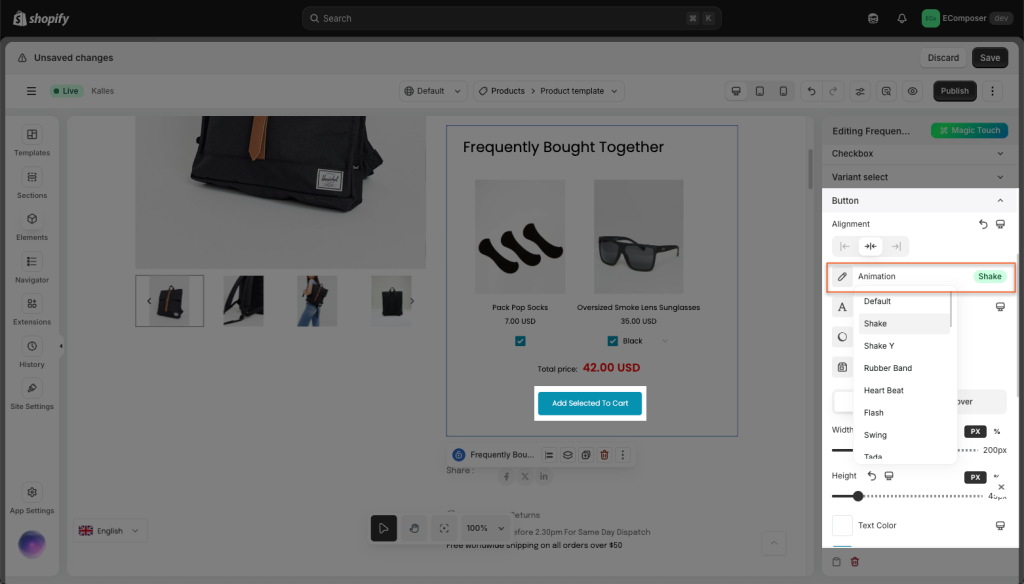 Note: If you select certain products in Ecomposer Editor, they will show as a priority. If not, it will show the products that you had picked in Product Metafield.