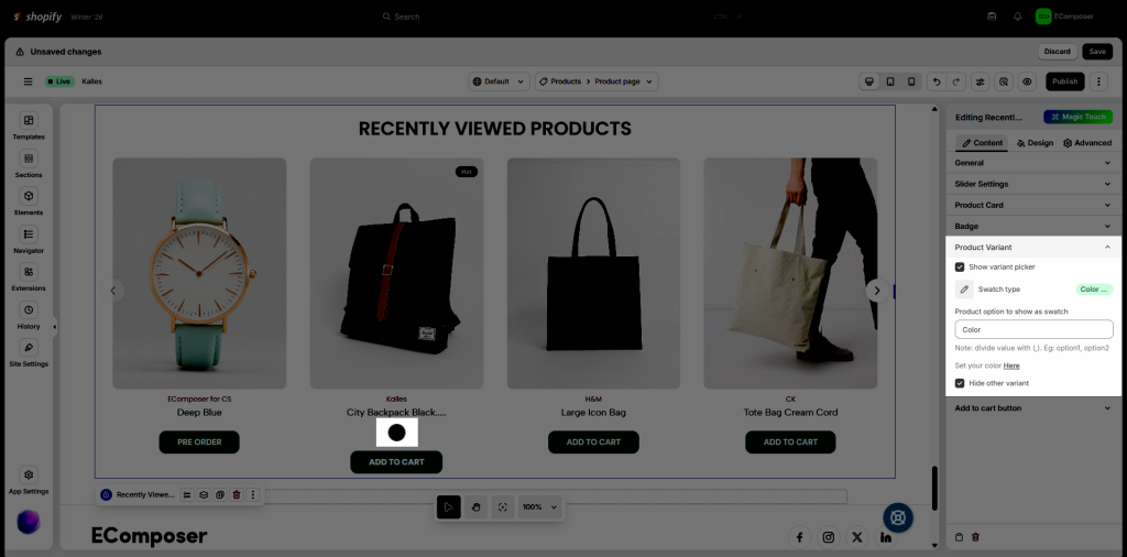 - Show variant picker: hide or show the variant of each product