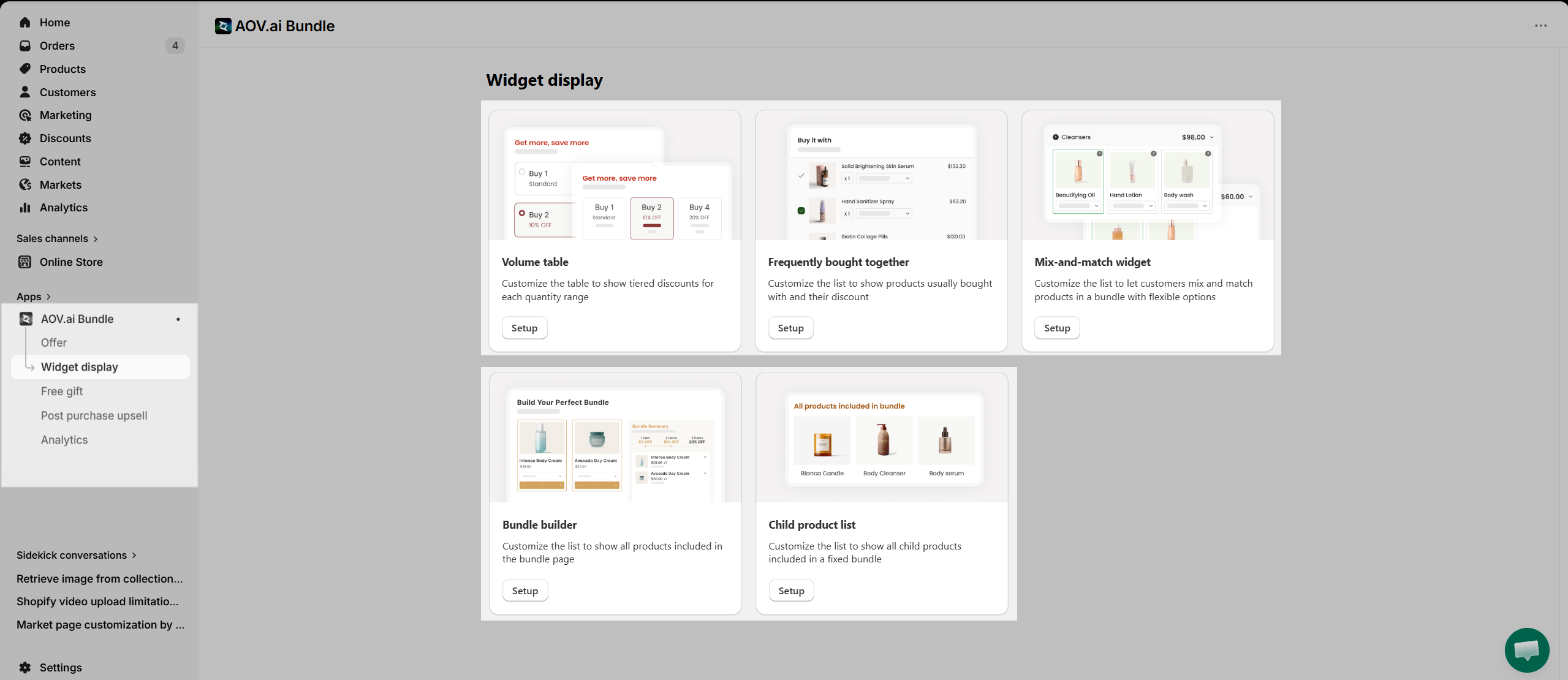 2. How to set up the widget in the AOV.ai Bundles Upsell app