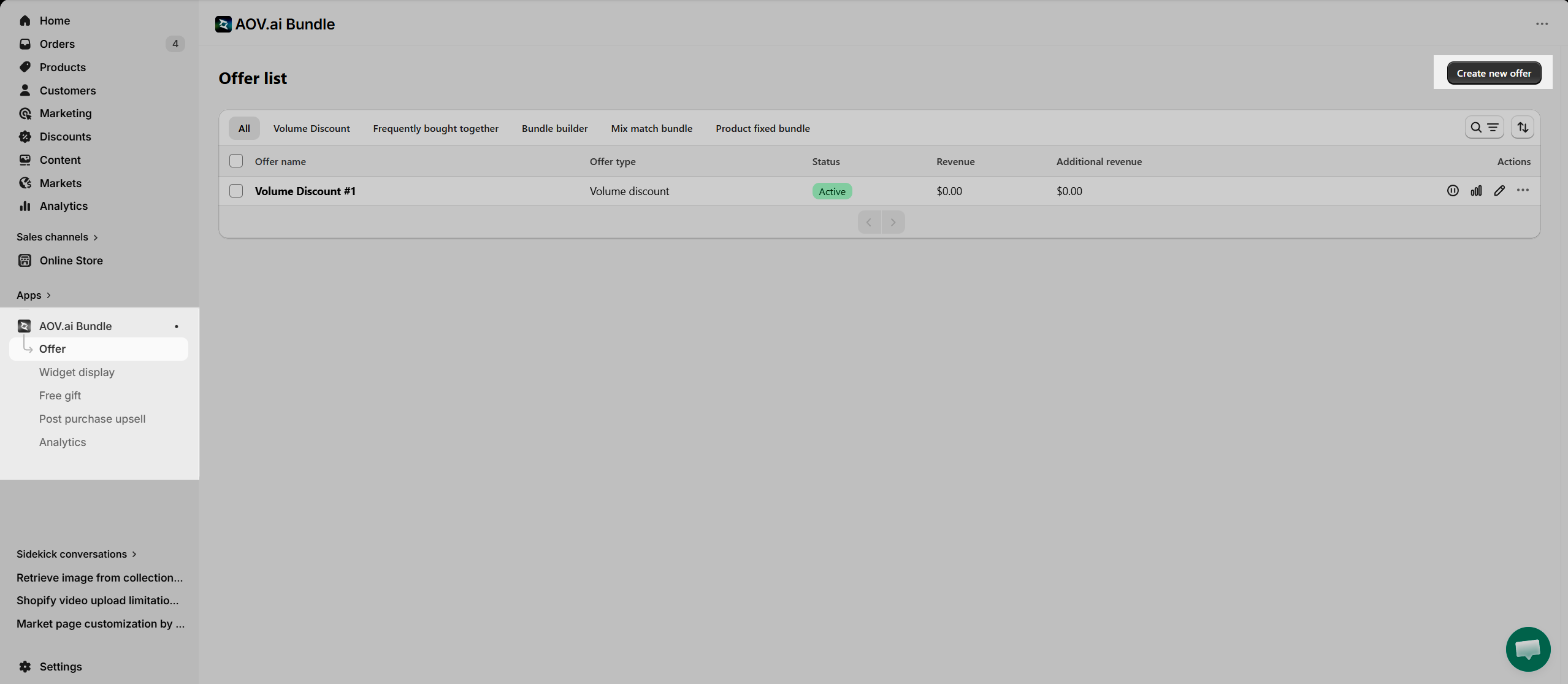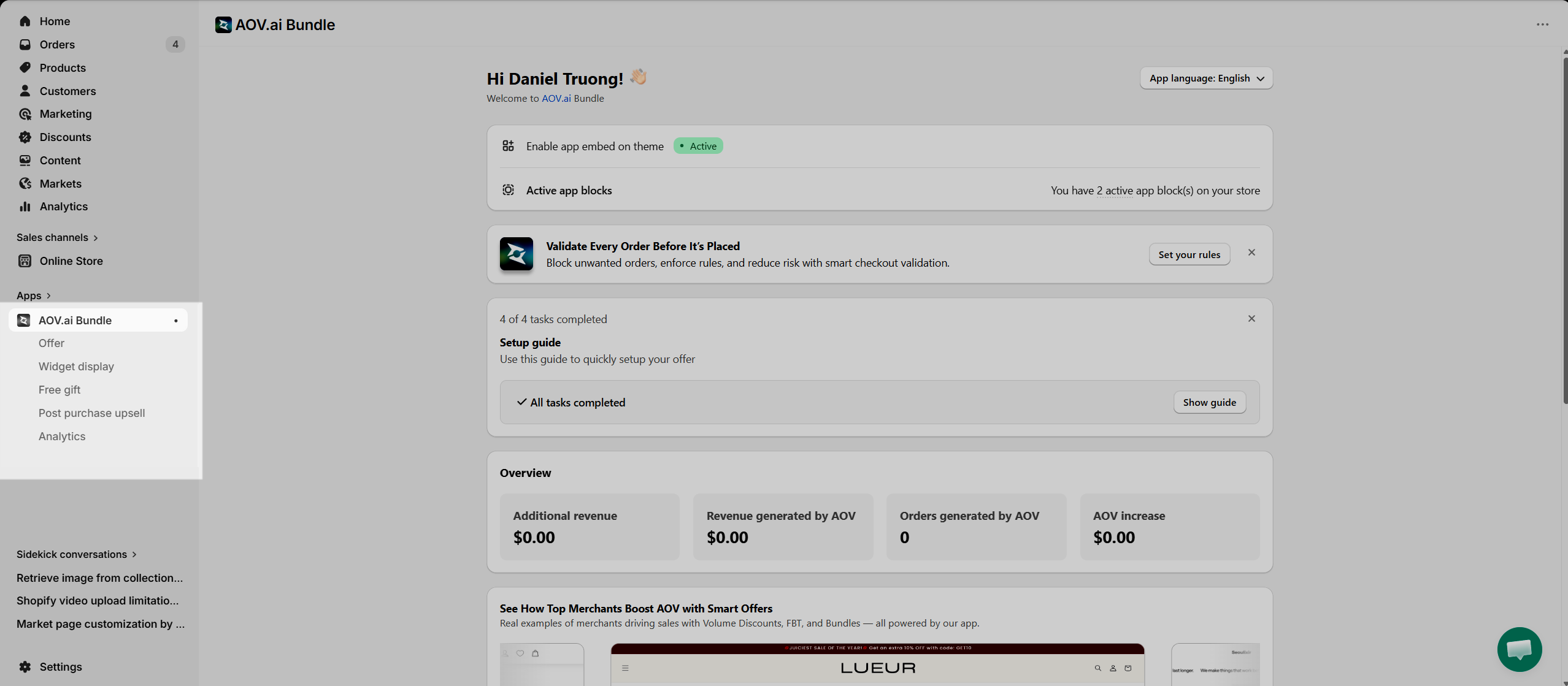 Step 1: Go to the AOV.ai Bundles Upsell app in your Shopify admin.