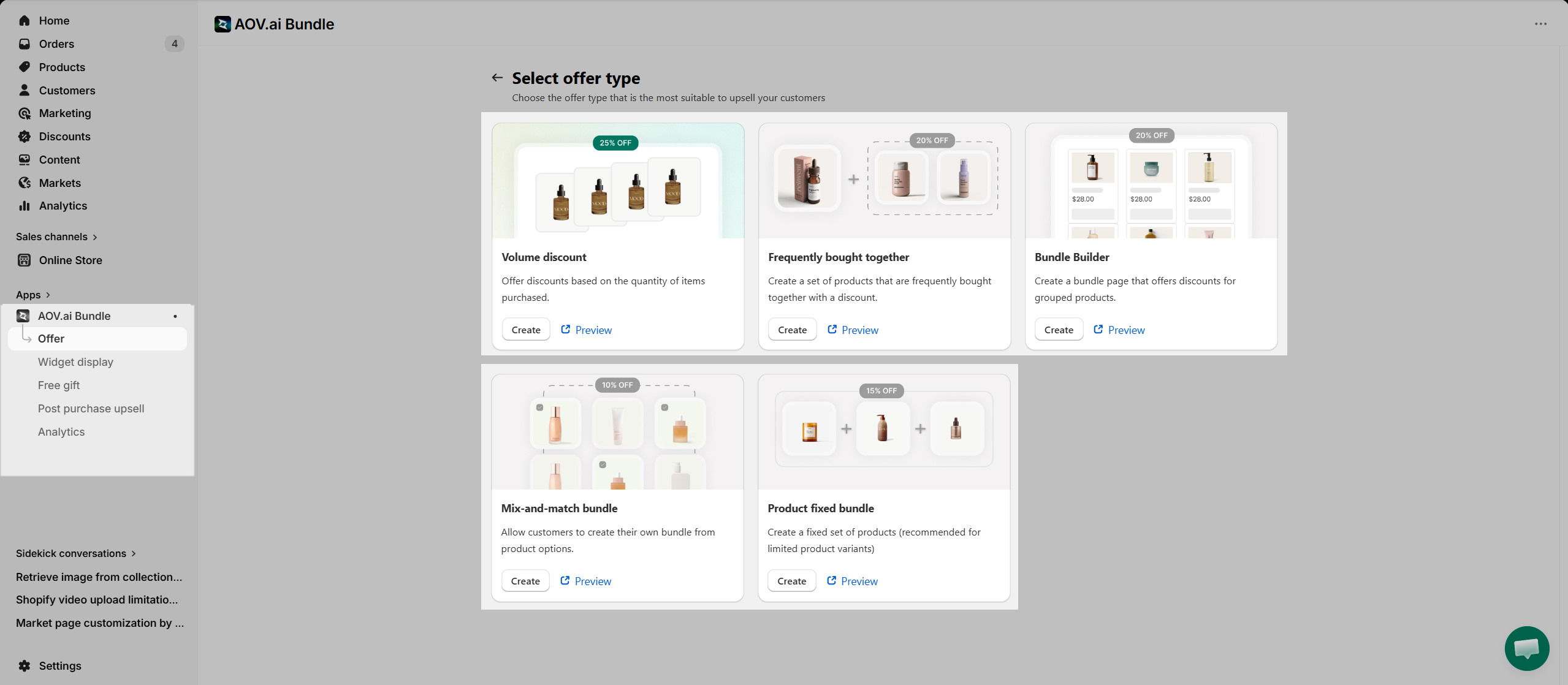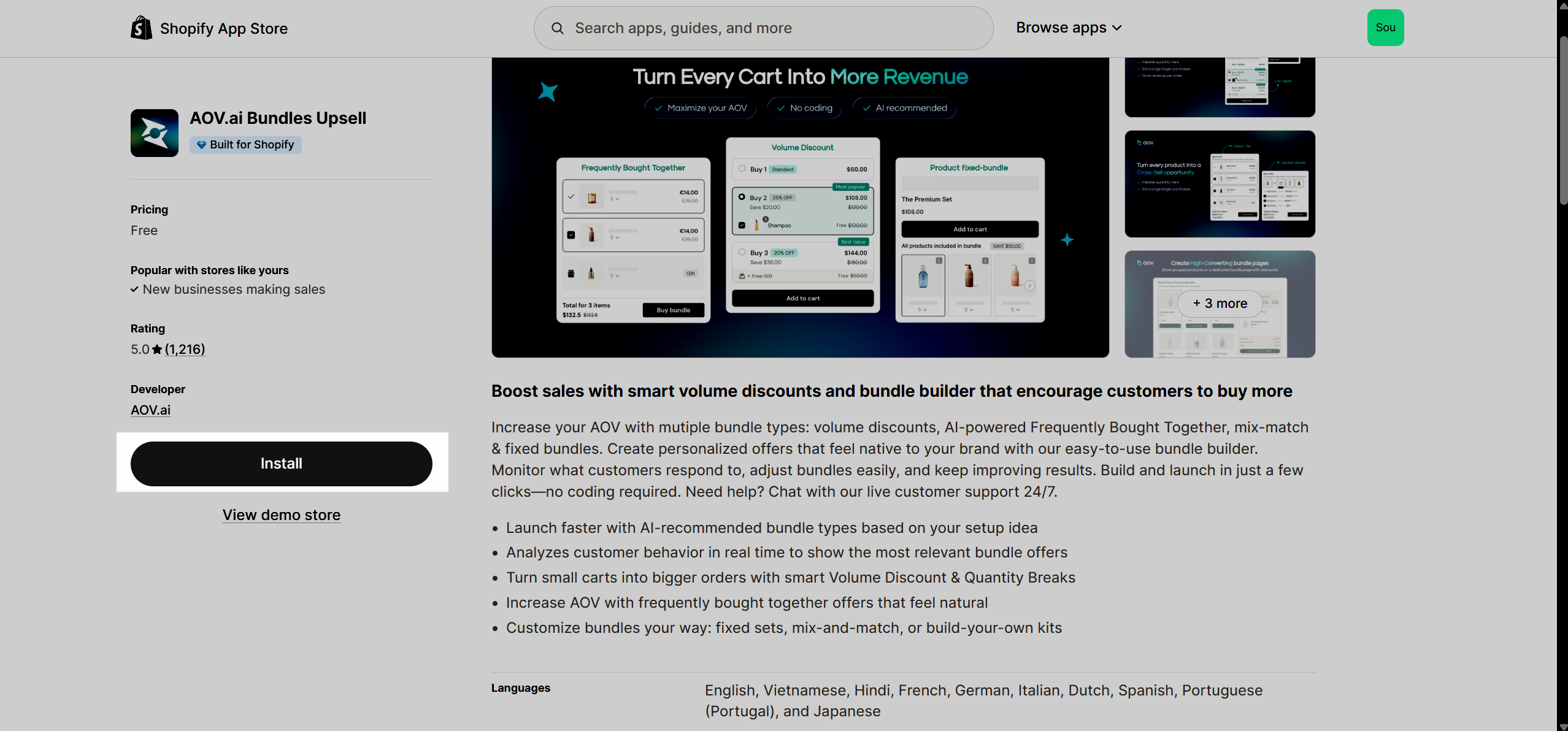 Step 1: To use this extension, please install the AOV.ai Bundles Upsell app from your Shopify store first.
