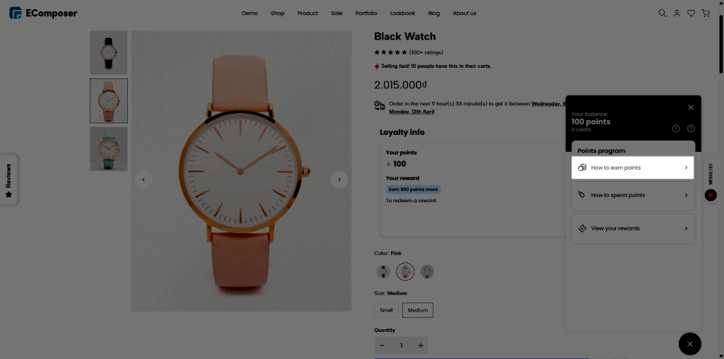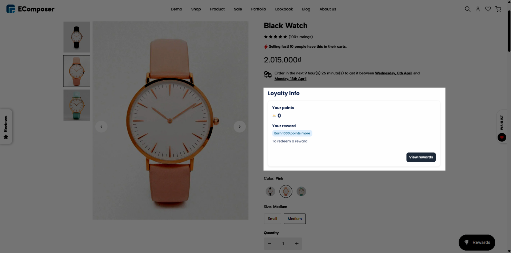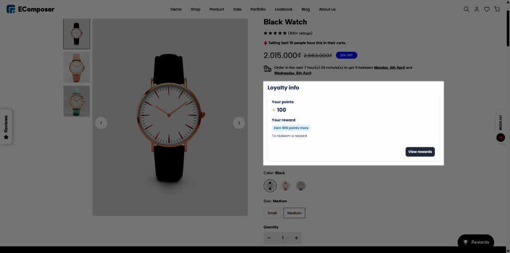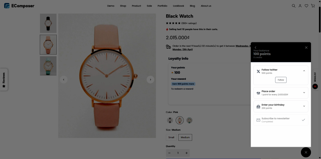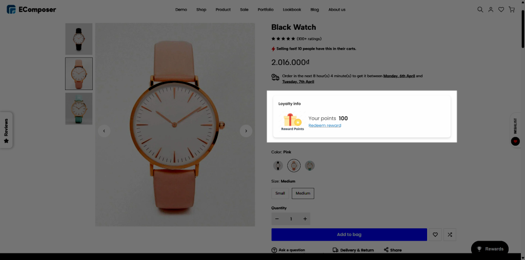 Growave: Loyalty Info Widget is designed to display customer loyalty information such as points, rewards, and membership status directly on your storefront, helping you enhance customer engagement and encourage repeat purchases. The integration in EComposer allows you to easily add this widget to any page built with EComposer, making it more convenient to use Growave features across your custom-designed pages without additional coding.