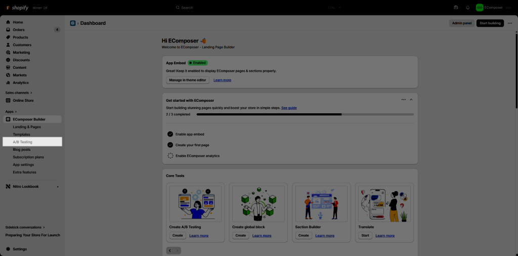 To run A/B tests live on your storefront, EComposer must be properly integrated with your active Shopify theme. This step ensures that your test variations display seamlessly to customers and that performance tracking works accurately.