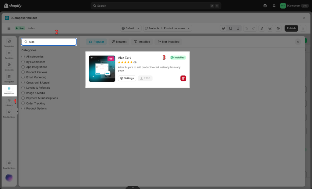 First, you need to install the Ajax cart extension (The Ajax cart extension is available on the paid plans only).