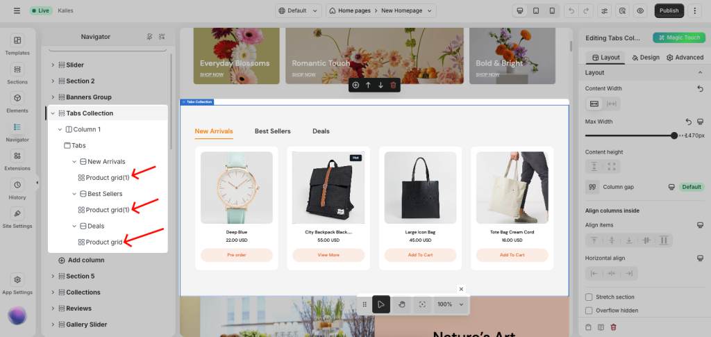 Normally, we recommend keeping the page structure simple and limiting the number of sections whenever possible. To check the number of sections on your page, open the Navigator tab in the builder.